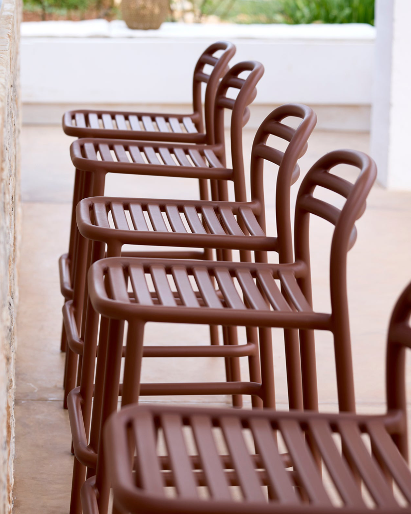 The Bliss high chair by Foersom & Hiort-Lorenzen MDD brings a simple, elevated aesthetic to any outdoor setting. Its raised seat height makes it ideal for bar areas, kitchen islands and café counters, while the stackable construction ensures easy storage. With its slim profile, crafted from durable, powder-coated aluminium, the chair combines visual lightness with reliable support. It is designed to withstand both private outdoor use and the demands of high-traffic hospitality spaces.
