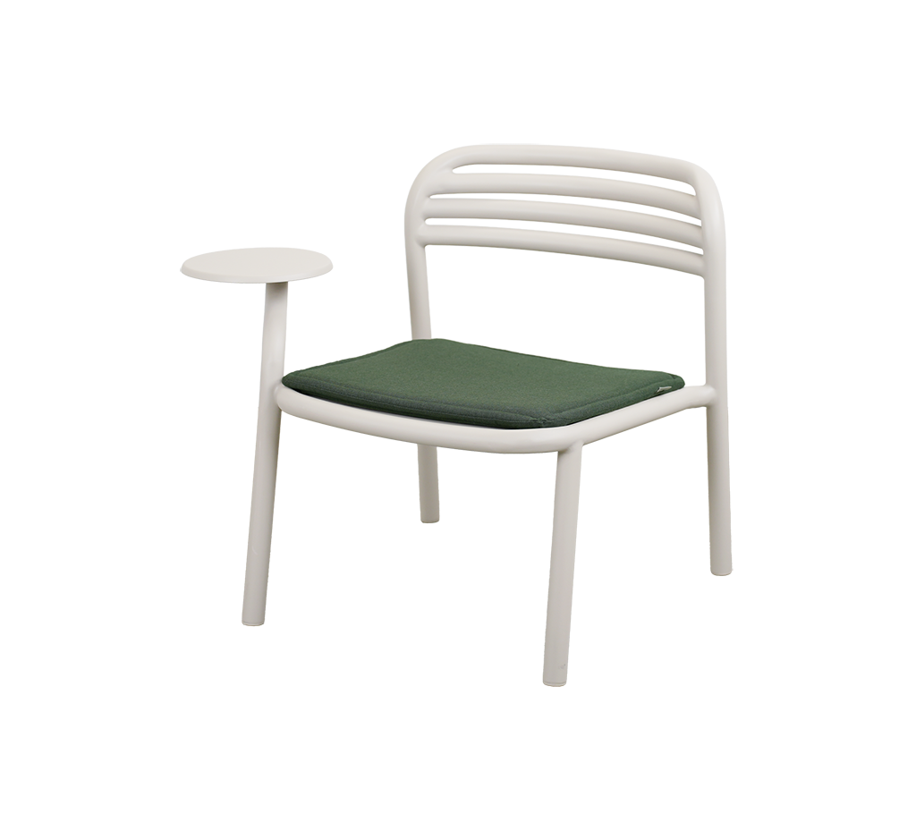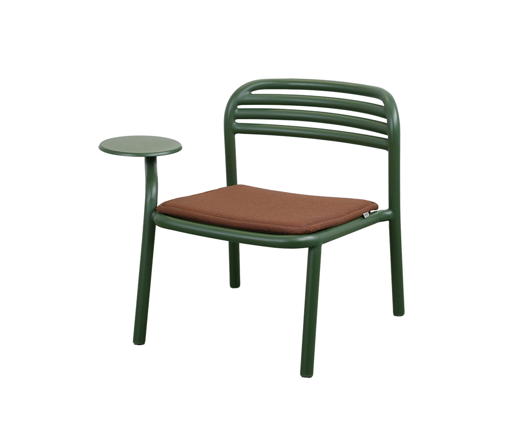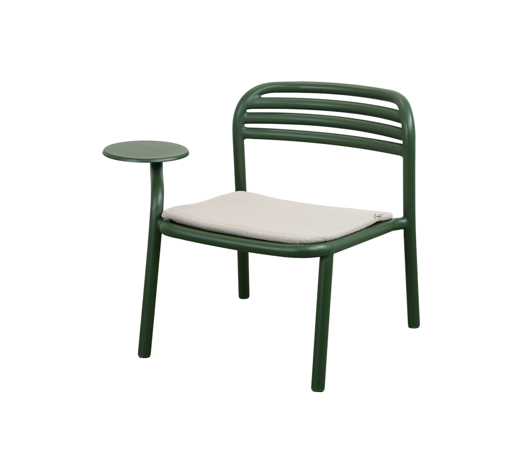 Balanced proportions and a calm design language make this piece ideal for hospitality spaces such as lobbies, halls and lounges, or private gardens and terraces. Combine several Bliss lounge chairs in different colours and enhance the comfort with the tailored Bliss lounge chair seat cushion, which also fits the Bliss lounge chair without side table.