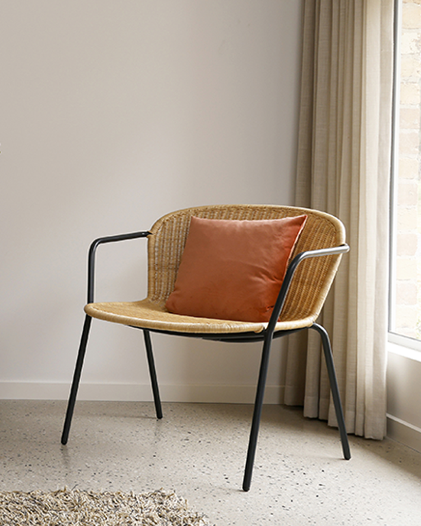 Elliot is not what you might expect from a woven lounge chair. Delicately blending contemporary Danish design with mid century modern rationale Elliot is distinguished by its fluent combination of materials and textures that unite to form a lounge chair that is strikingly balanced and functional. The warmth of a handwoven shell contrast sharply with a powder coated steel frame to create a piece with true intergenerational appeal. A generously curved back and long arms maximize comfort and invite flexible seating positions. Available in both natural rattan and polyethylene for outdoor use.