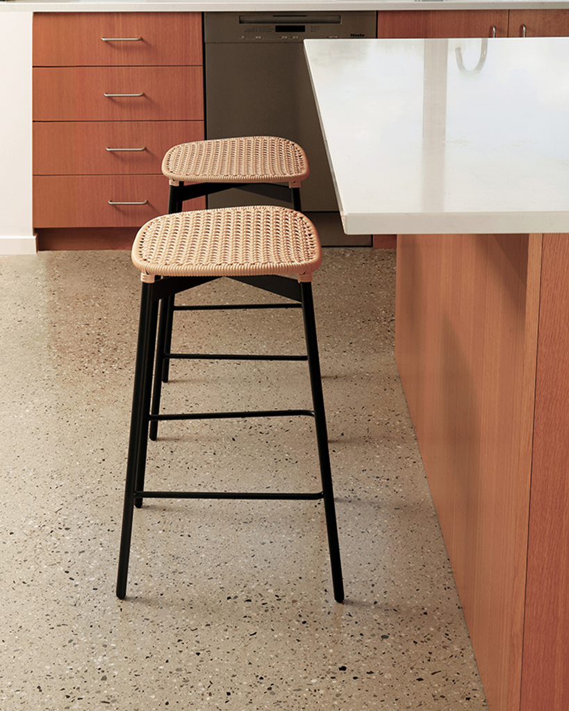 Characterised by its curvaceous backrest and elegant demeanour, Gorm's components seamlessly unite to form a piece that is poised and balanced. An intricately woven shell allows a delightful interplay of light and shadow, resulting in a range that is eye-catching from any angle. The subtle elasticity of the handwoven components combined with a generous backrest nurture the user and offer refuge. Designed by Allan Nøddebo, Gorm is a sophisticated woven classic that will remain relevant for decades to come. The Gorm range includes a dining chair, lounge chair, highback chair, barstools and an ottoman. Available in natural rattan shell for indoor use and polyethylene shell for outdoor use.