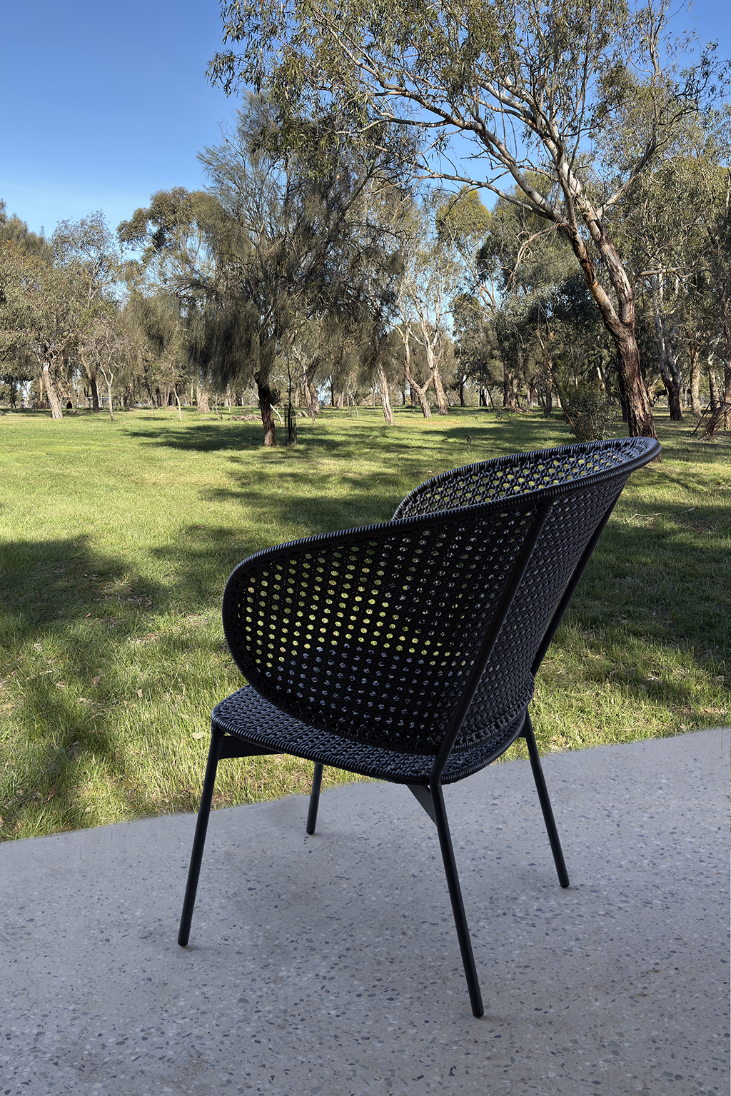 Characterised by its curvaceous backrest and elegant demeanour, Gorm's components seamlessly unite to form a piece that is poised and balanced. An intricately woven shell allows a delightful interplay of light and shadow, resulting in a range that is eye-catching from any angle. The subtle elasticity of the handwoven components combined with a generous backrest nurture the user and offer refuge. Designed by Allan Nøddebo, Gorm is a sophisticated woven classic that will remain relevant for decades to come. The Gorm range includes a dining chair, lounge chair, highback chair, barstools and an ottoman. Available in natural rattan shell for indoor use and polyethylene shell for outdoor use.