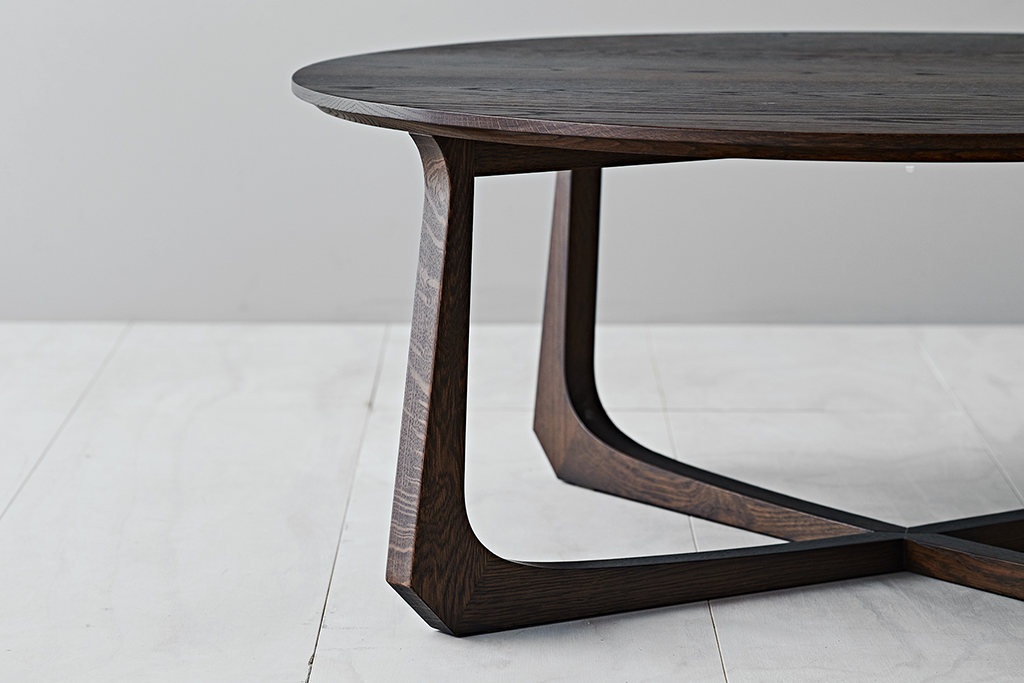 The La Corona range is completed with the coffee table version. The curve in the leg is accentuated in the coffee table for more dramatic effect and proportions of the leg and top are increased to maintain the balance of the side table version.