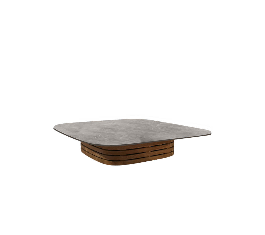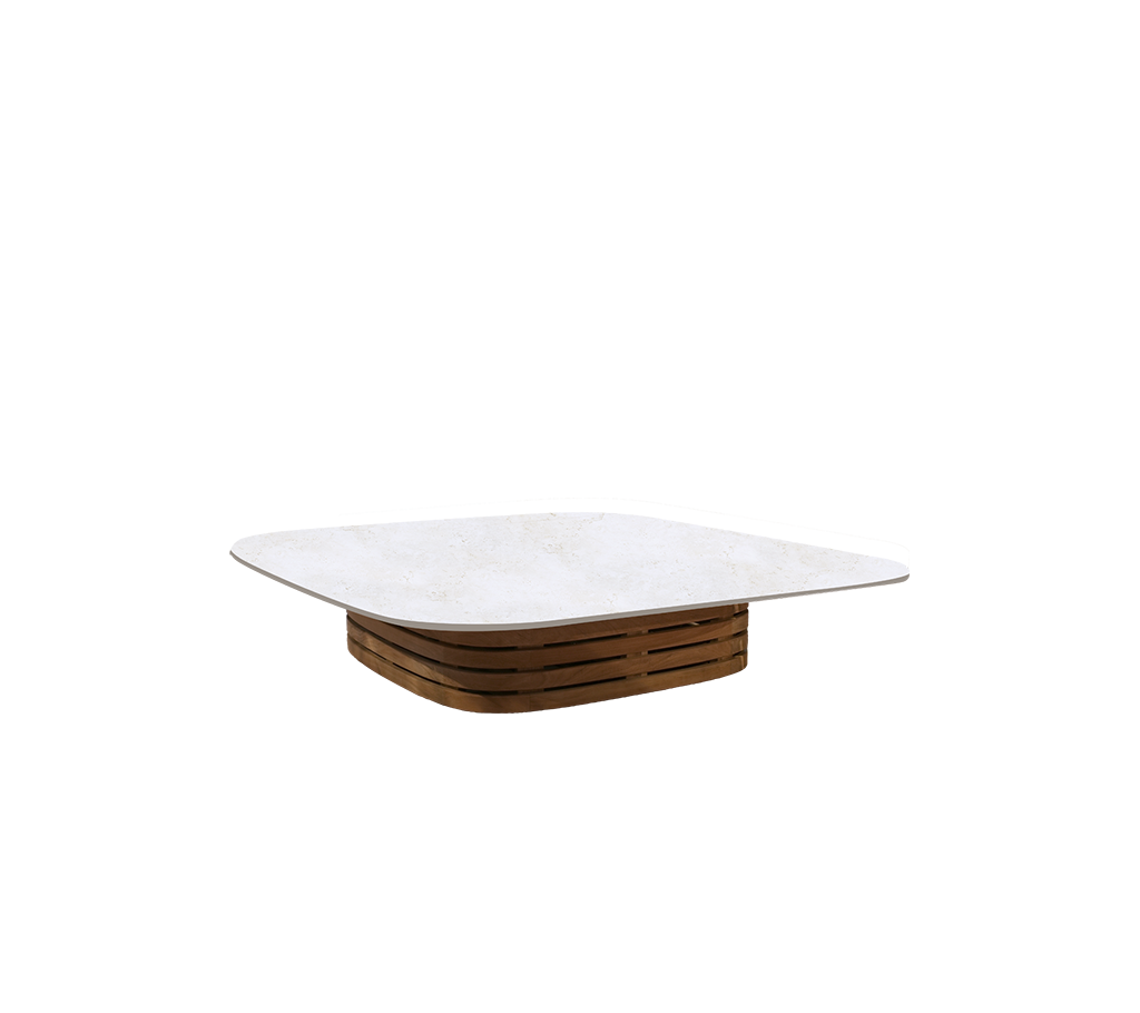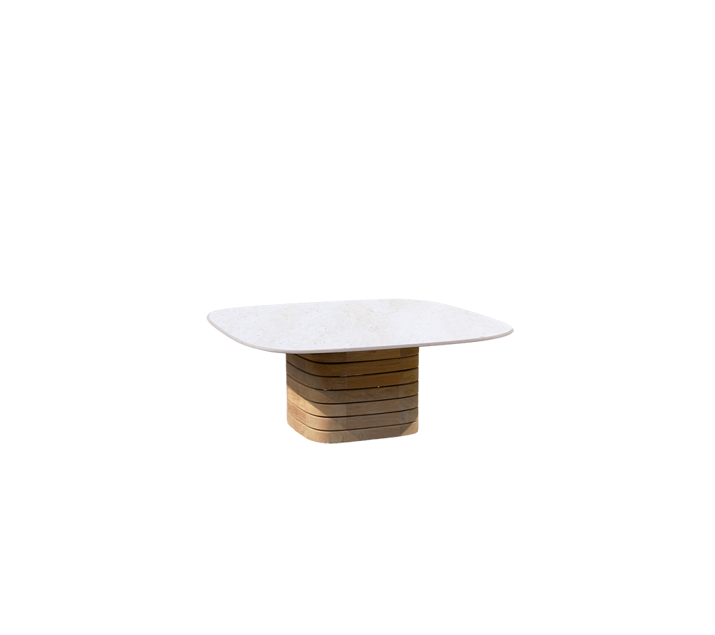 Combine the small Mellow coffee table with the larger, lower Mellow coffee table, 1440mm × 1440mm, sharing the same design language, to create a dynamic arrangement with varied form and scale.