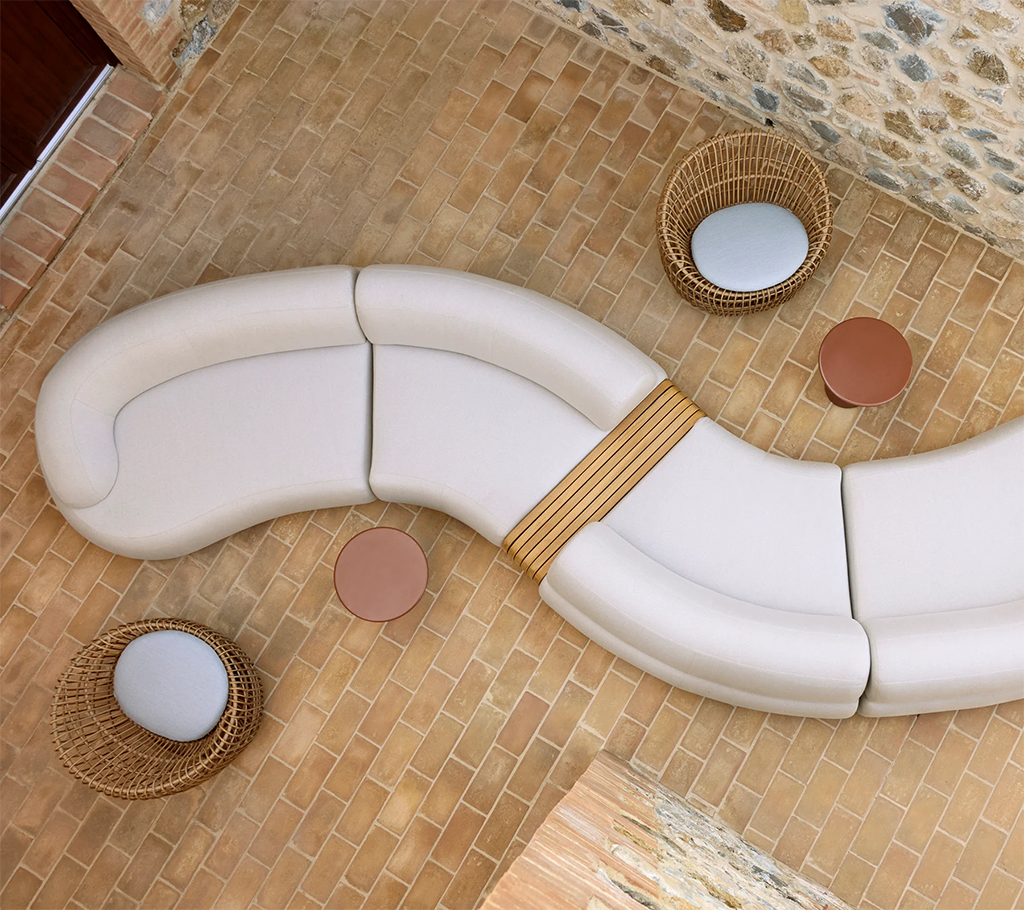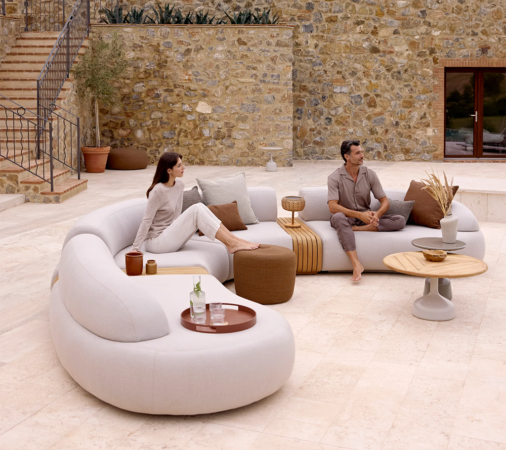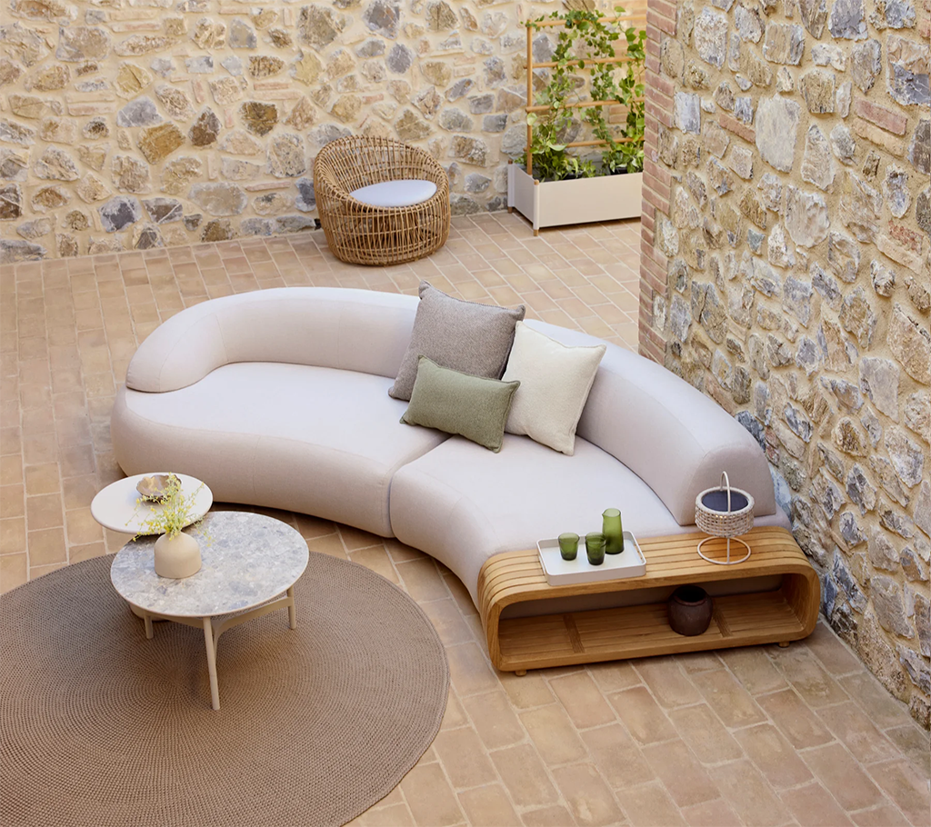 The Mellow series by Cane-line Design is a modular, sophisticated and elegant outdoor lounge-series that combines curvy, flowing lines with practical functionality. Its low seating and plush cushions create a cosy, inviting atmosphere, while the sturdy aluminium frame ensures durability.