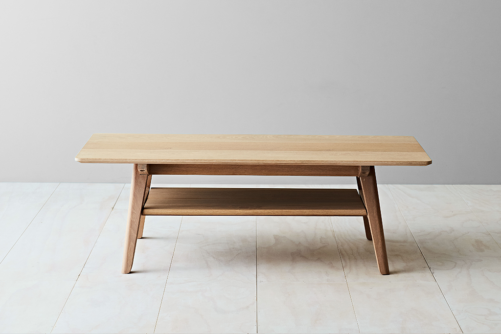 The Tuki coffee table completes the Tuki range, with sculptured legs and forms borrowed from the Tuki family. The lower shelf provides practical storage space and custom sizes are available.